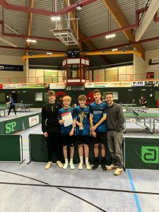 Auch die Jungen 13, mit Silas, Ensar, Kuzey und Lino, vertraten den TTC mit großem Einsatz. In der ersten Runde gelang ein überzeugender 4:2-Erfolg gegen den TV 06 Burgsolms. Im Halbfinale entwickelte sich gegen den TV 1894 Braunfels ein spannendes und ausgeglichenes Spiel, das denkbar knapp mit 3:4 verloren ging. Im anschließenden Spiel um Platz drei zeigte das Team jedoch noch einmal seine ganze Stärke und bezwang den FSV Berghausen klar mit 4:0. Damit sicherten sich die Jungen 13 einen starken 3. Platz.