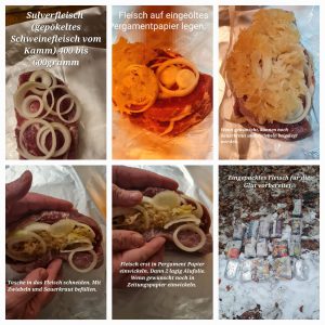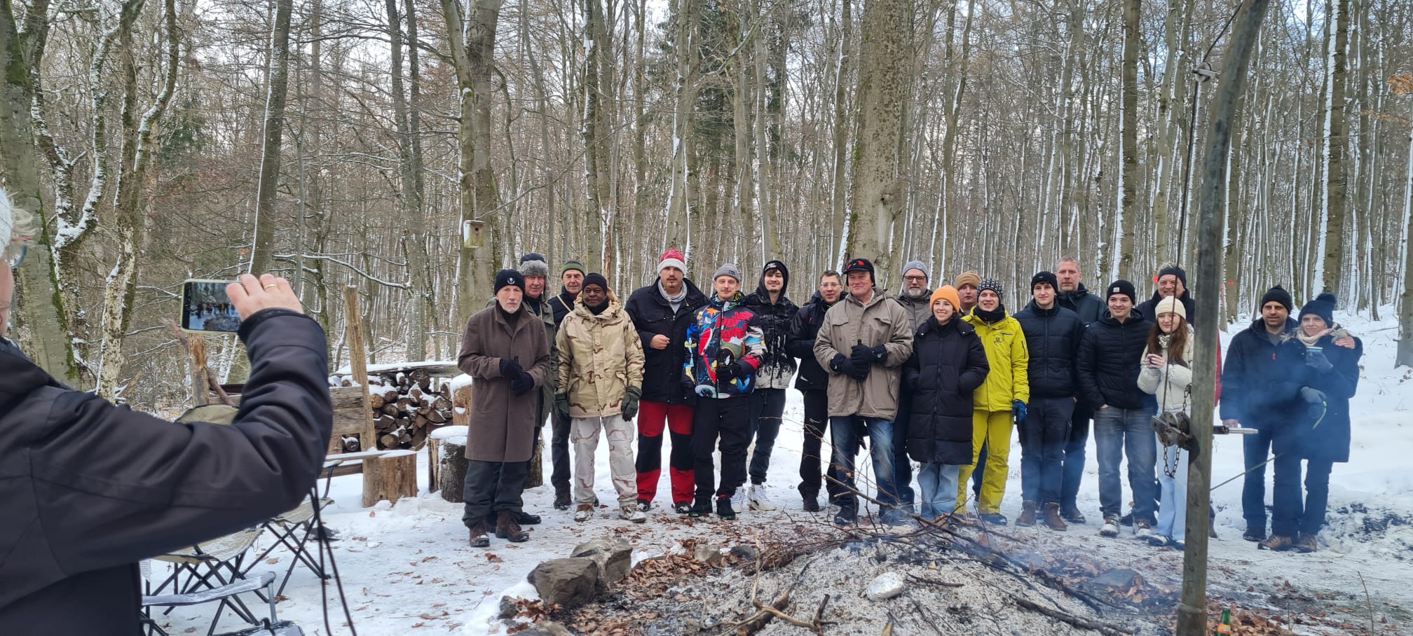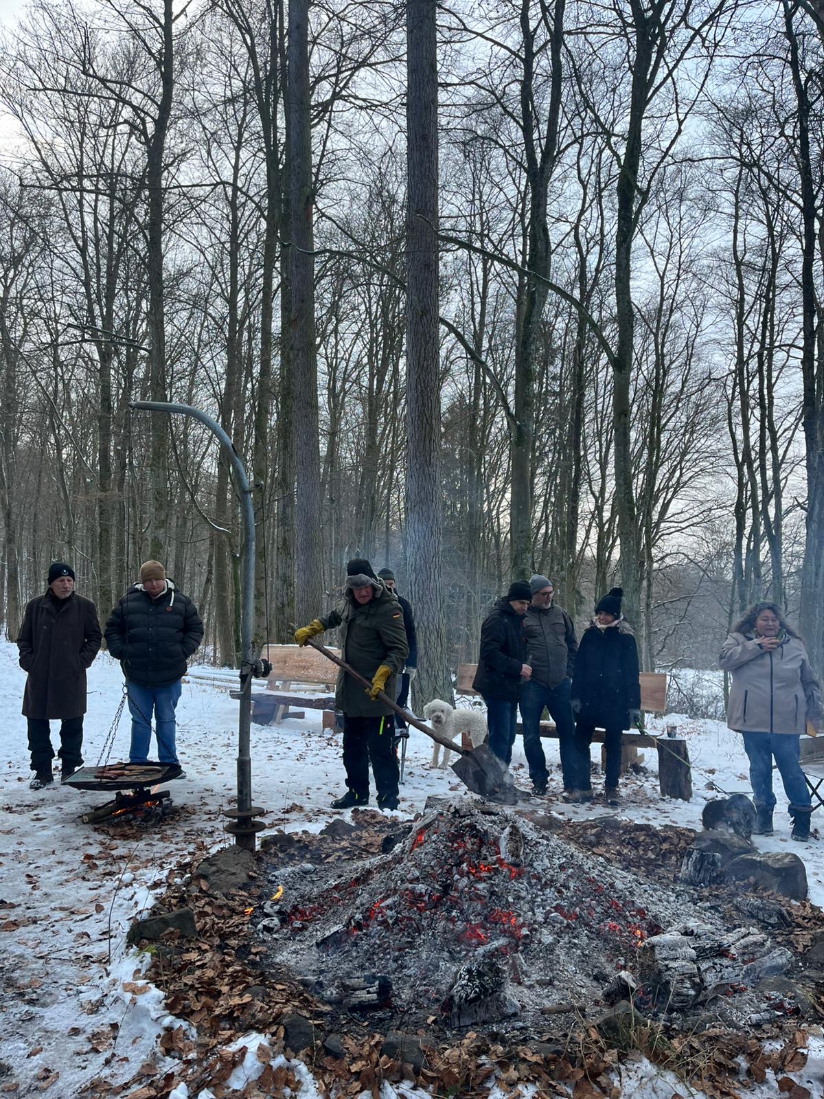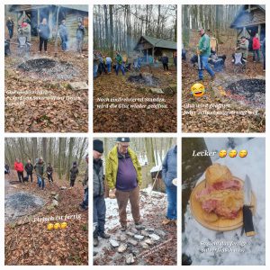 Bestes Wetter zum Fleischbraten – kalt, trocken und reichlich Schnee hatten wir in diesem Jahr bei unserem traditionellen Fleischbraten am 03.01.2026. Es waren diesmal 27 Mitglieder und Partner des TTC Merkenbach, die sich auf den Weg von Merkenbach zur Liebig Hütte im Driedorfer Forst machten, um nach guter alter Sitte Fleisch in der Glut zu garen bzw. Steaks und Würstchen auf dem Grill zu braten. Dazu wurde die Hütte wieder gut geheizt und für gut gekühlte Getränke wurde selbstverständlich auch gesorgt. Unser Dank an Siegmar Dietrich, der sich schon früh ab 07.30 Uhr um das Feuer gekümmert hat – es muss ja am mittag genug Glut vorhanden sein. Am Ende war es wieder sehr lecker und hat allen Spaß gemacht. Siegmar hatte sich diesmal im Vorfeld auch die Mühe gemacht eine genaue Beschreibung für das Solberfleisch zu machen. Diese möchten wir unten mit den Bildern nun mit allen Lesern teilen. Alle waren sich einig – so eine Tradition darf man nicht aufgeben. Bilder sagen hier mehr wie Worte. Schaut Einfach.